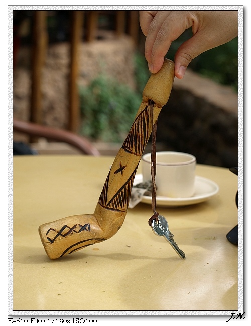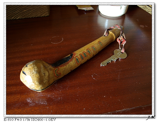 Amboseli飯店的鑰匙圈十分特殊,是仿造馬賽人隨身攜帶的木棒。馬賽人走在野外就是靠這根棒子當作防身武器,不要小看這根棒子,王小宇後來有買一根仿製品當作紀念,發現這木棒還蠻沈手的,堅硬的木材用力敲下去搞不好還真的會出人命呢。