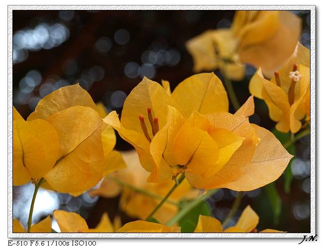 九重葛。我在台灣還沒見過橘色的九重葛(只見過白色的和桃紅色的),覺得很特殊就拍下來了。
