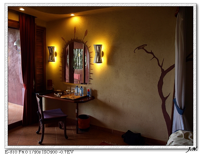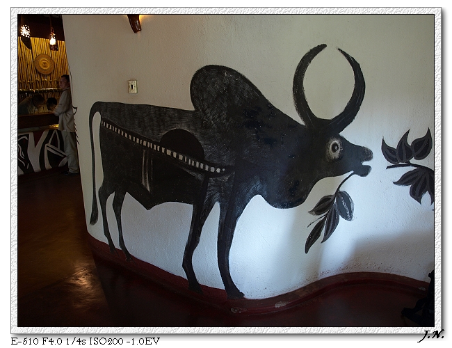 牆壁上也彩繪著民族風的壁畫,為飯店增添了不少非洲氣氛。我想這應該是水牛吧?