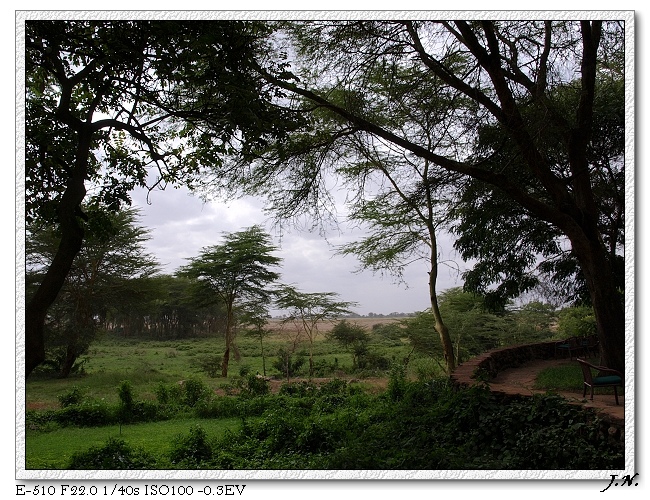 車行一個小時之後,我們先在休息站稍做歇息,順便解決生理需求。肯亞的咖啡很有名,同團的幾位咖啡愛好者馬上點了咖啡開始享用。與台灣的休息站一樣,肯亞的休息站也是與土產商店結合。除了機場和飯店內的商店之外,在肯亞買東西是一定要殺價的。不過如果你不想買,就不要去講價,不然會被認為是你有購買的意願而一直糾纏不休。王小宇不愛也不會殺價,而且老實說這些商店陳列的商品也無法引起我的興趣,所以上完洗手間之後,便到庭院亂逛去了。